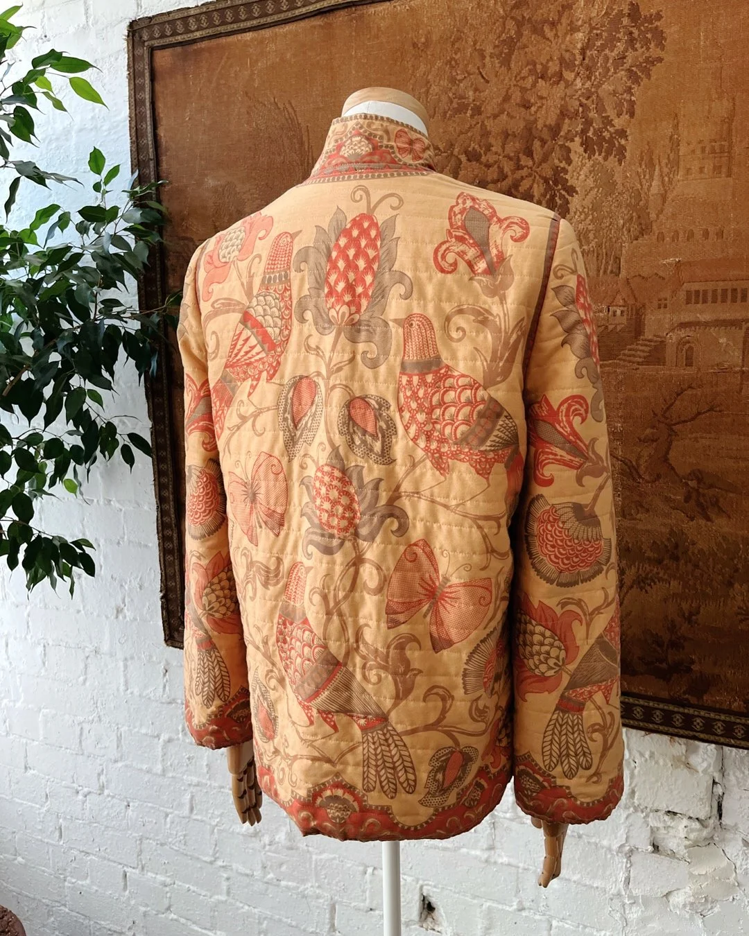1980s Clothkits Peach & Orange Quilted Floral Print Toggle Closure Jacket 12 14