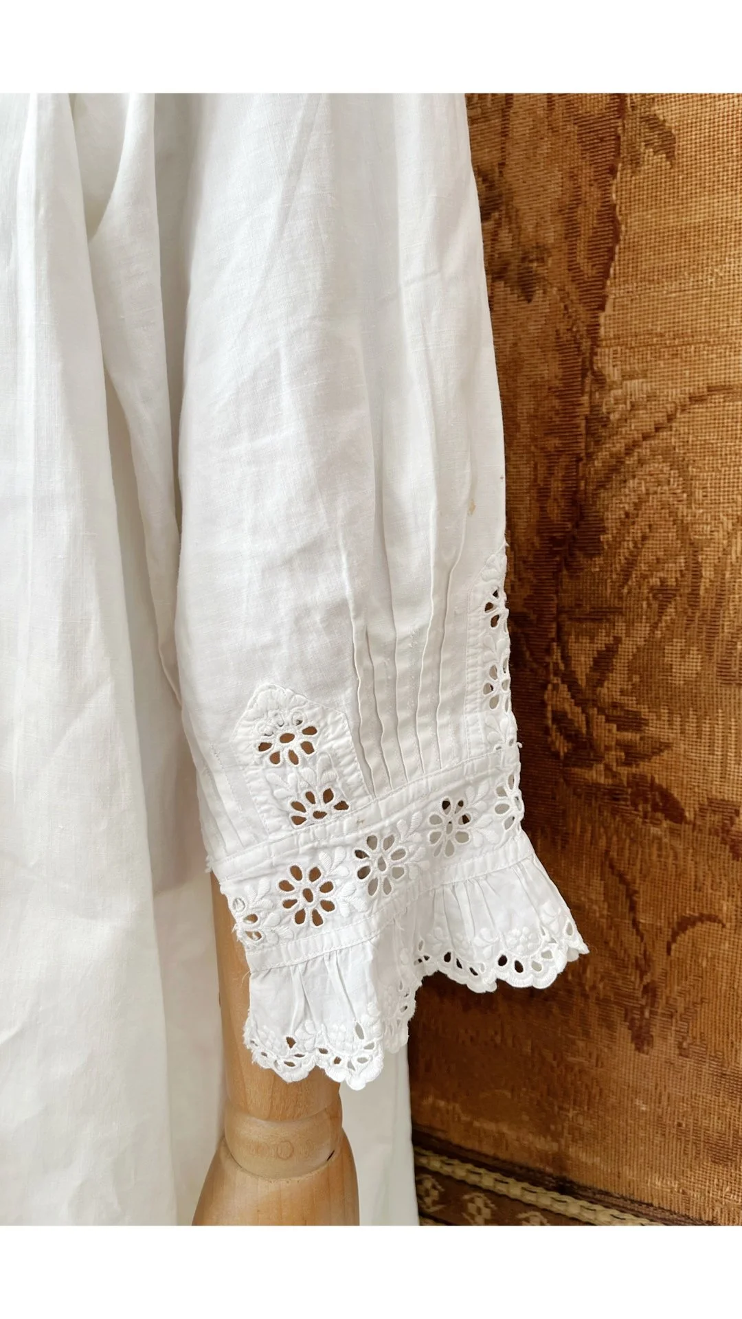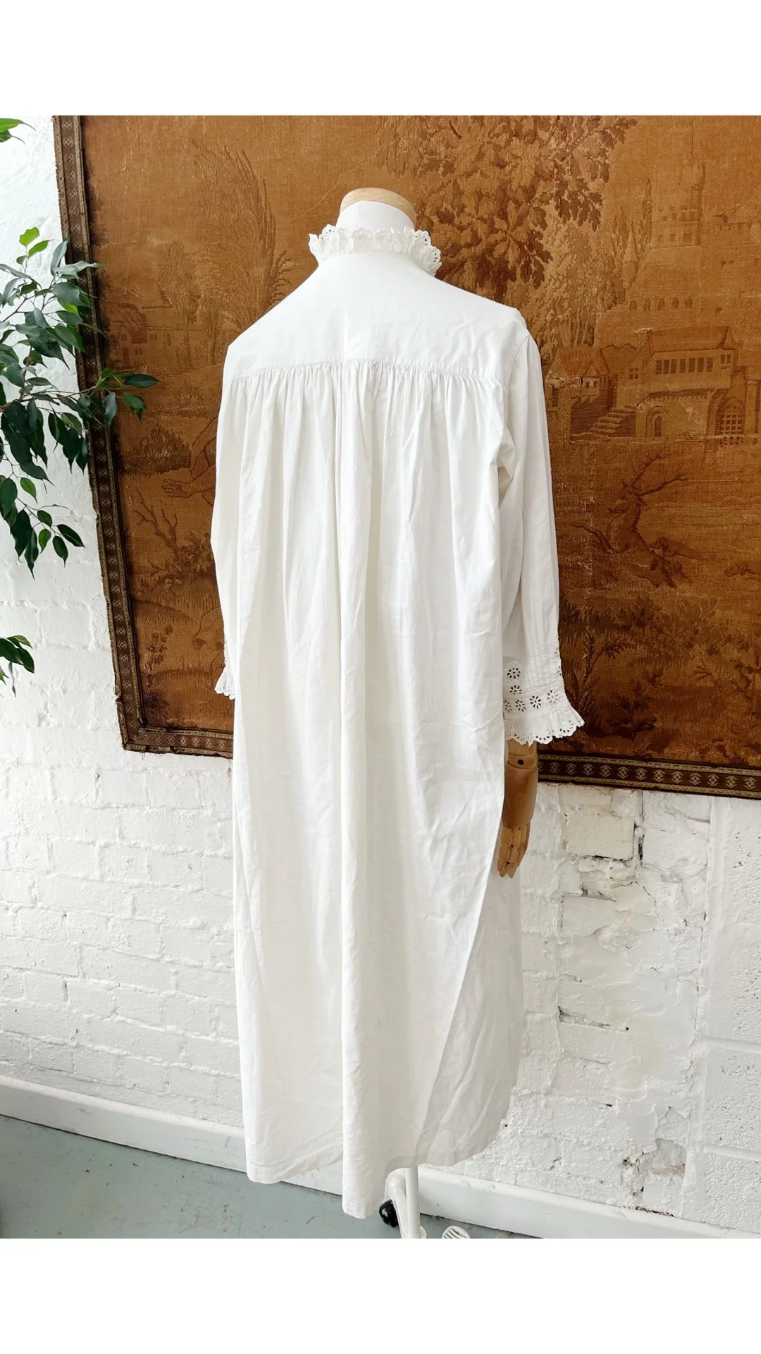 Antique Edwardian Broderie Anglaise Embroidered White Cotton Smock Nightdress
