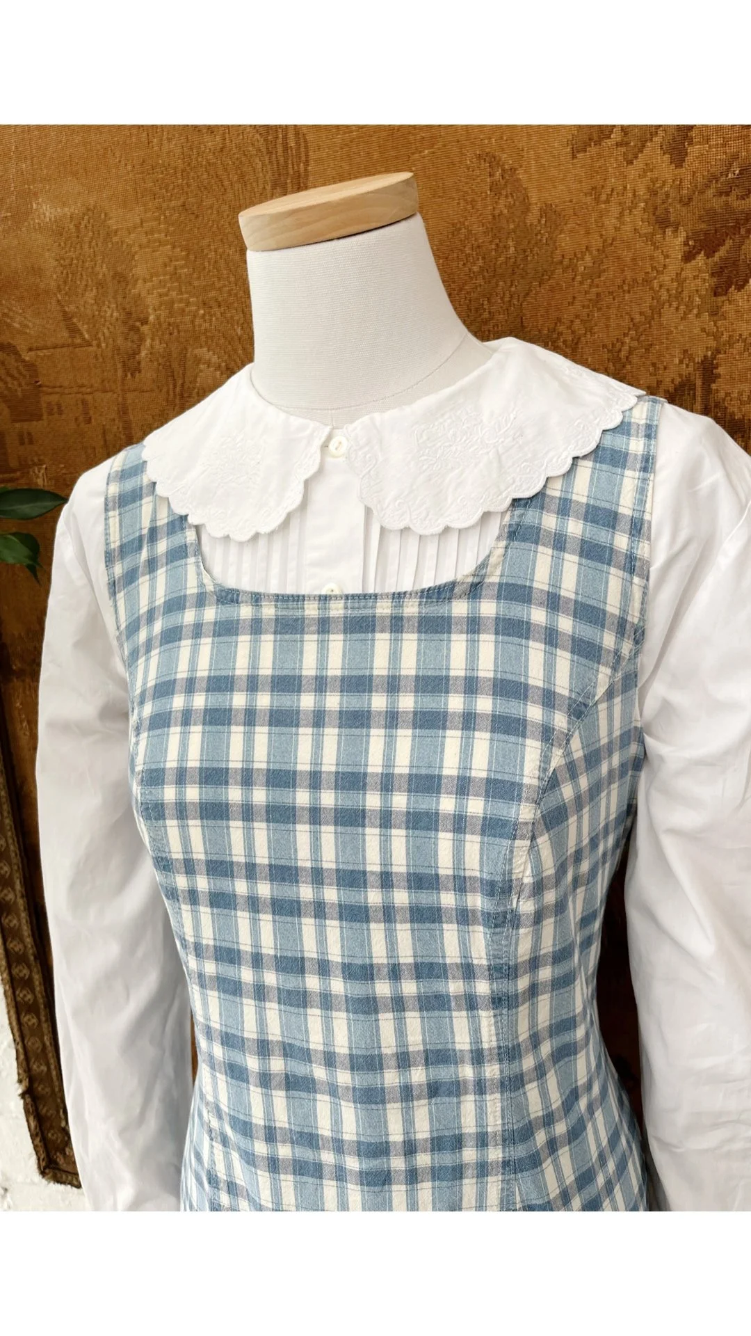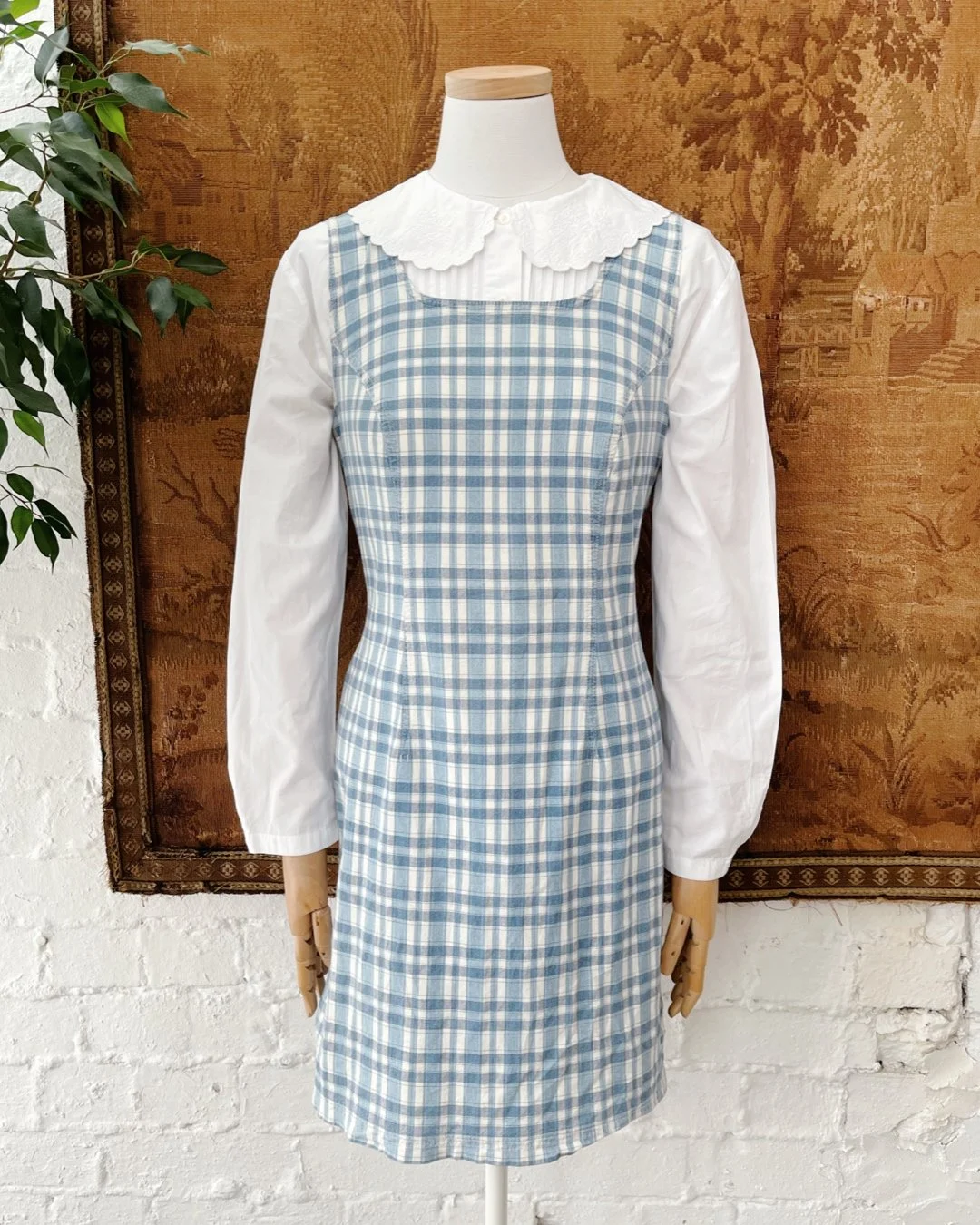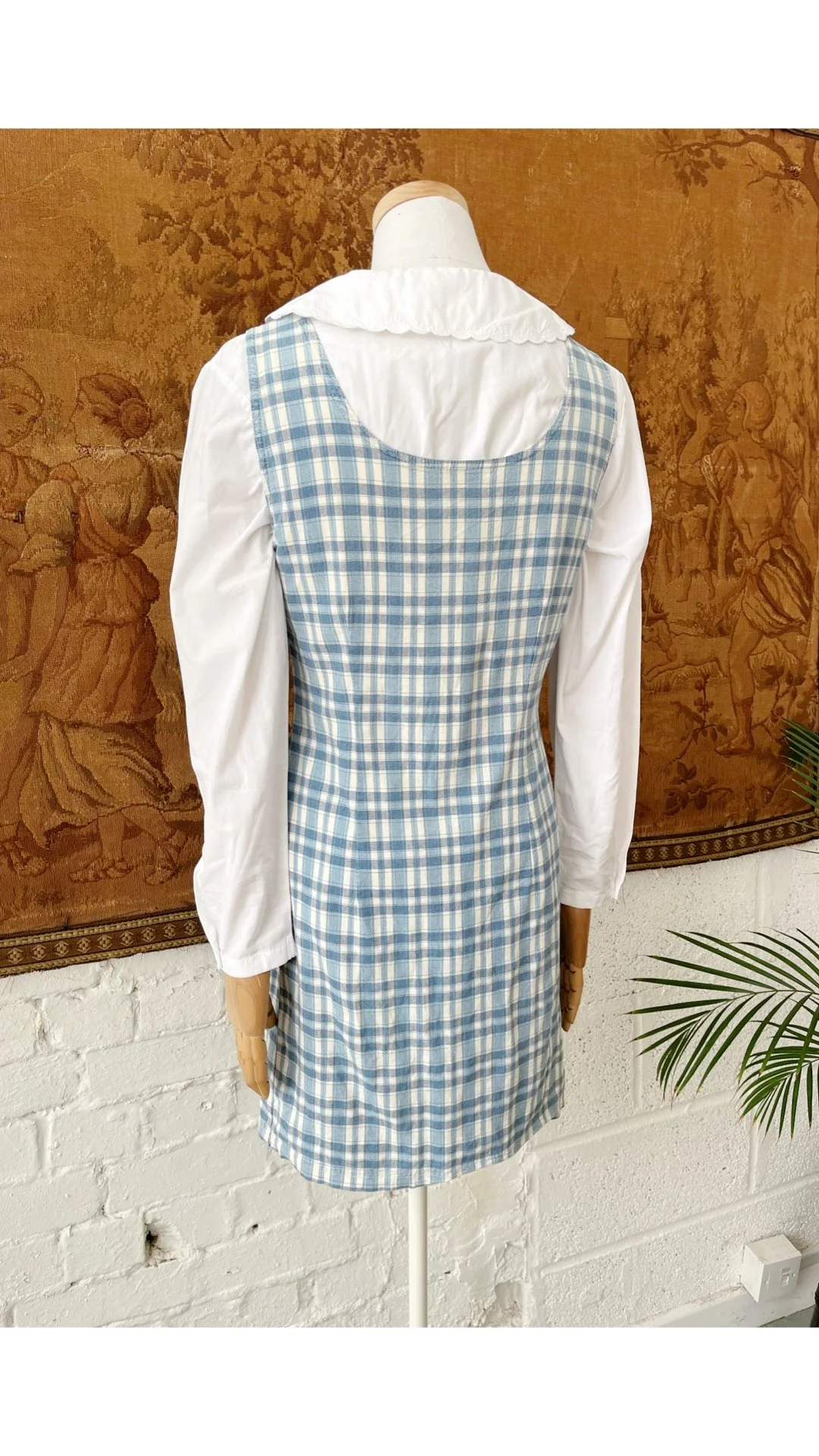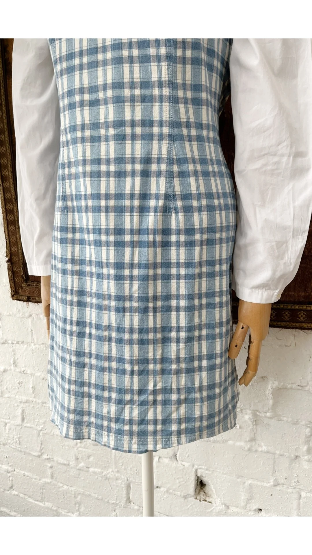 1990s St Michael Pale Blue & Cream Check Shift Dress 10 12