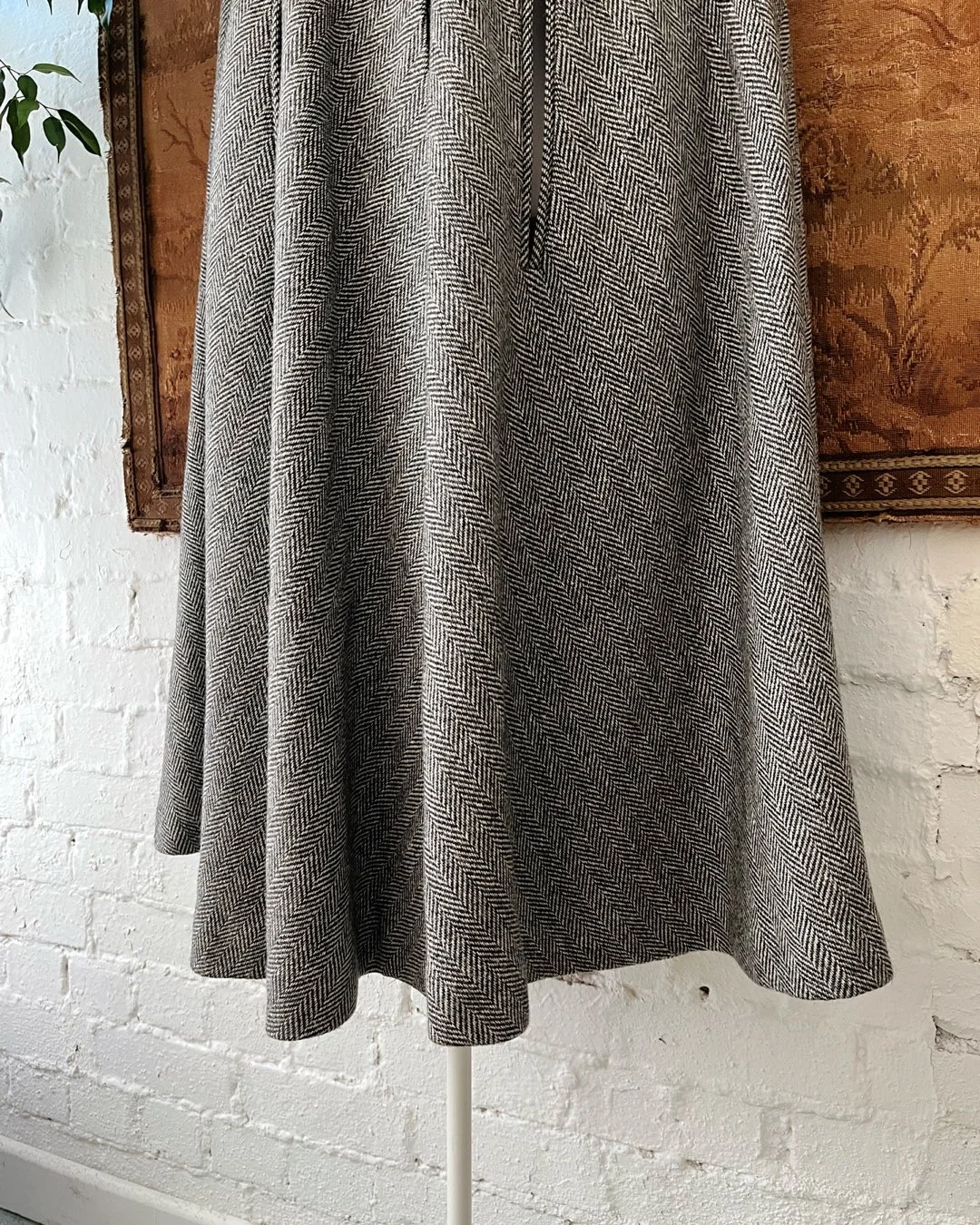 1960s Daphne Raven Black & White Herringbone Wool Cape