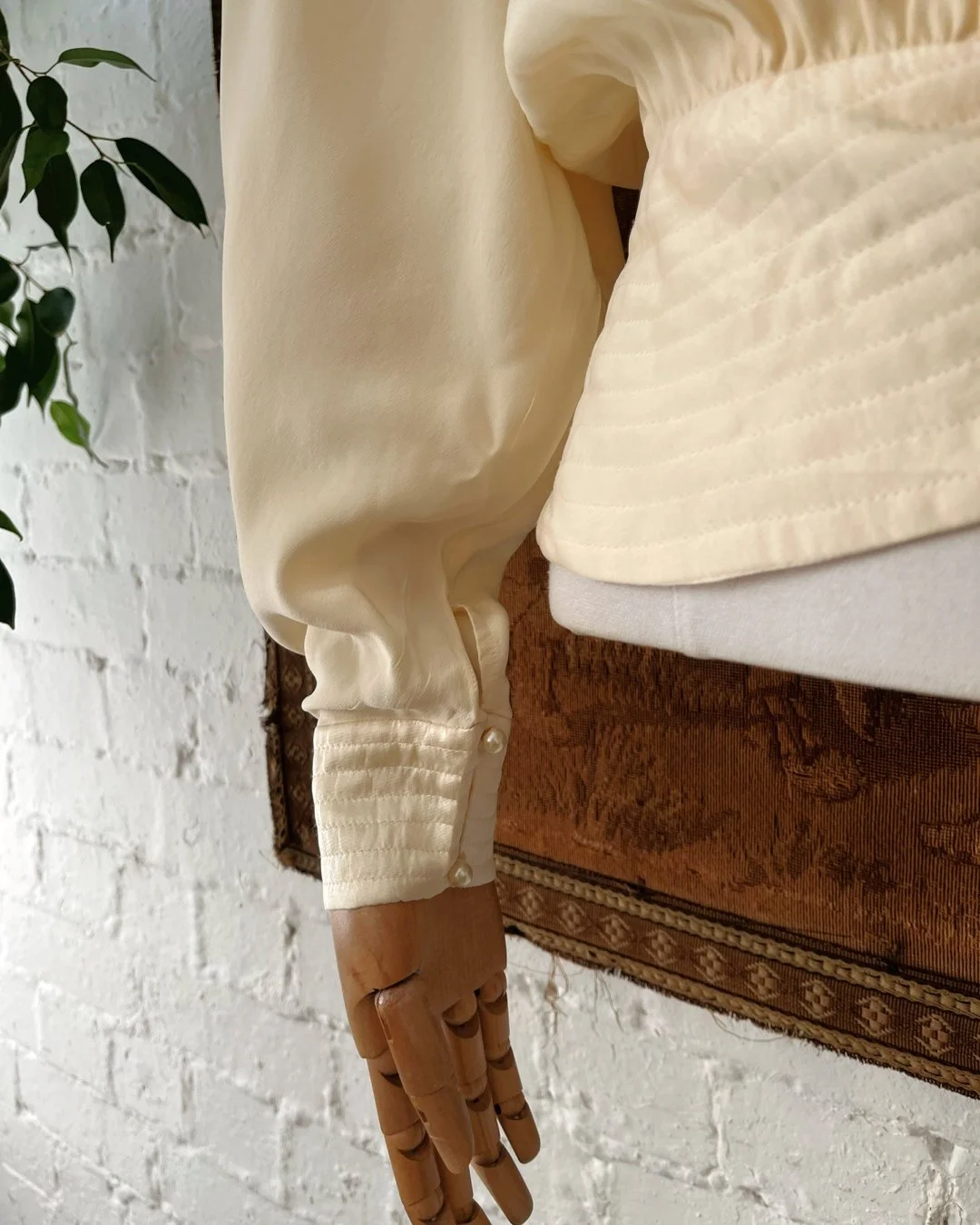 1980s Christina Stambolian Cream Silk Balloon Sleeve Blouse 8 10