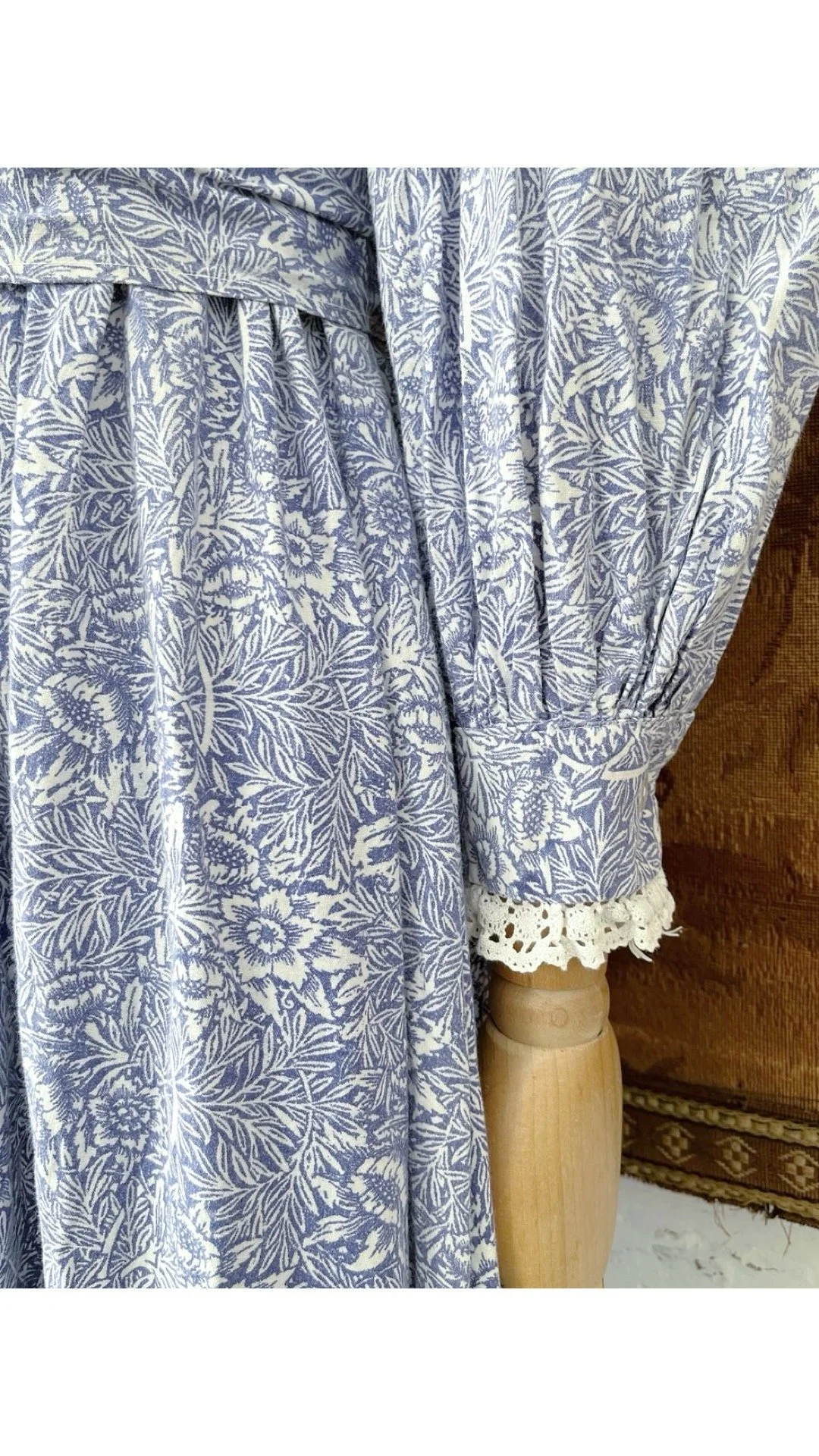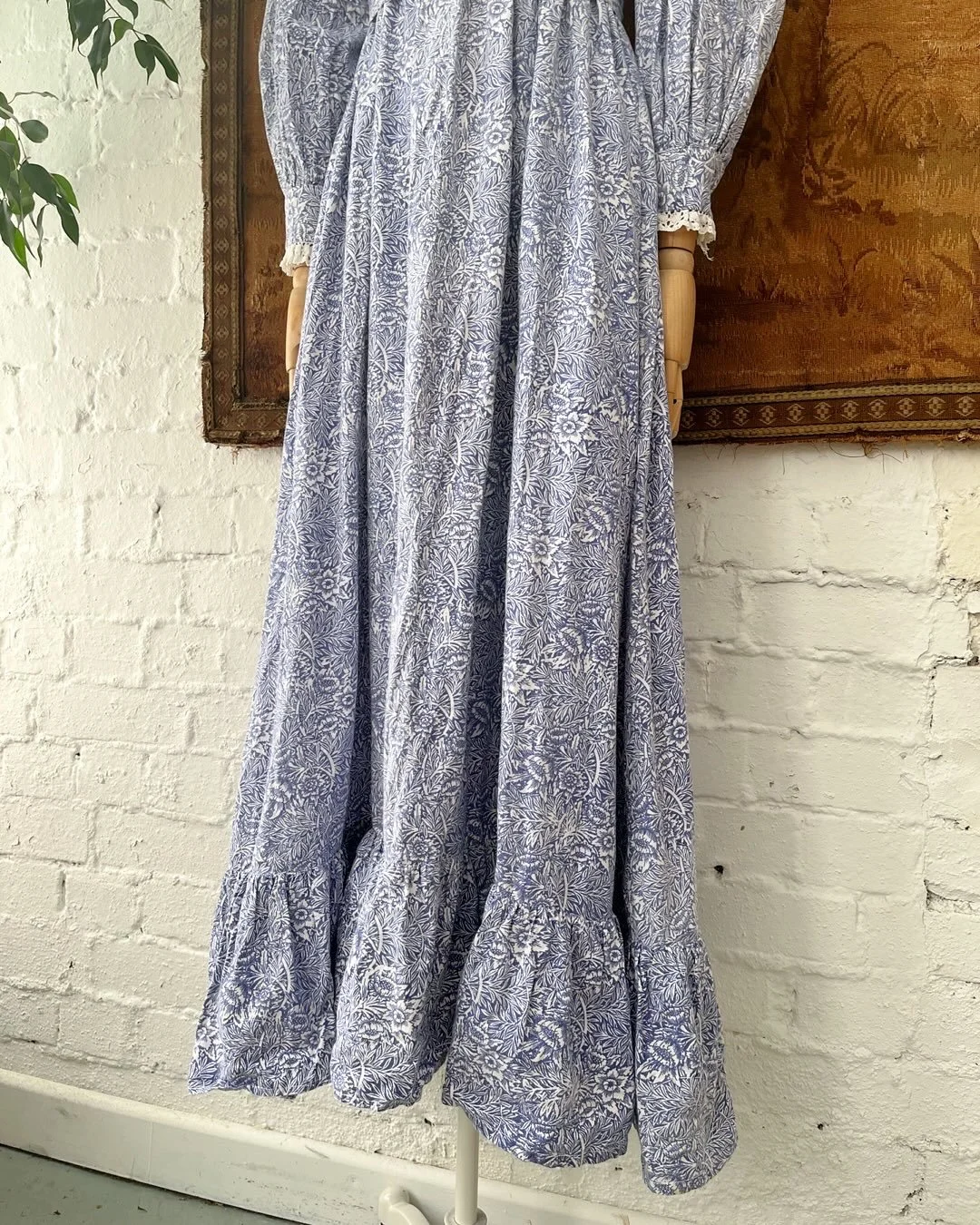 1970s Laura Ashley Blue & White William Morris Floral Print Maxi Dress 8 10